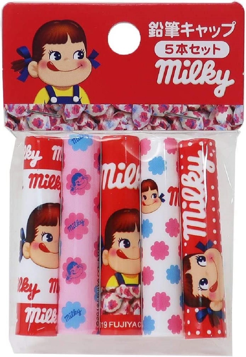 - 不二家のペコちゃん 鉛筆キャップ えんぴつカバー 5本セット ミルキー
