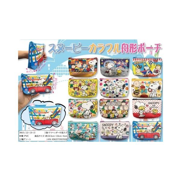 - 送料無料!大人気!『スヌーピー』カラフル舟形ポーチ(柄お任せ)4個組
