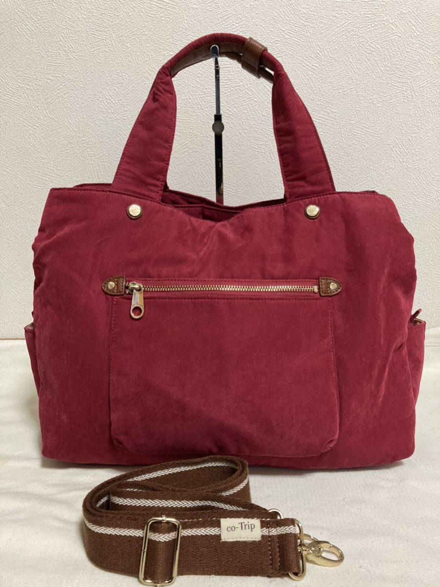 - 【極美品】最終特割 co-Trip ことりっぷ 3室式2wayトートバッグ 赤 お洒落 使える 激安!