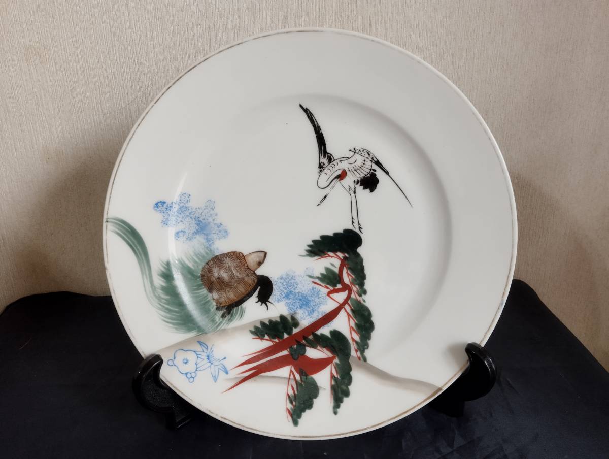 - 骨董品 飾り皿 亀 鶴 松 縁起物 インテリア アンティーク