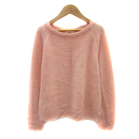 > ロペ ROPE ニット カットソー 長袖 ラウンドネック 無地 スパンコール M ピンク シルバー /YS32 レディース
