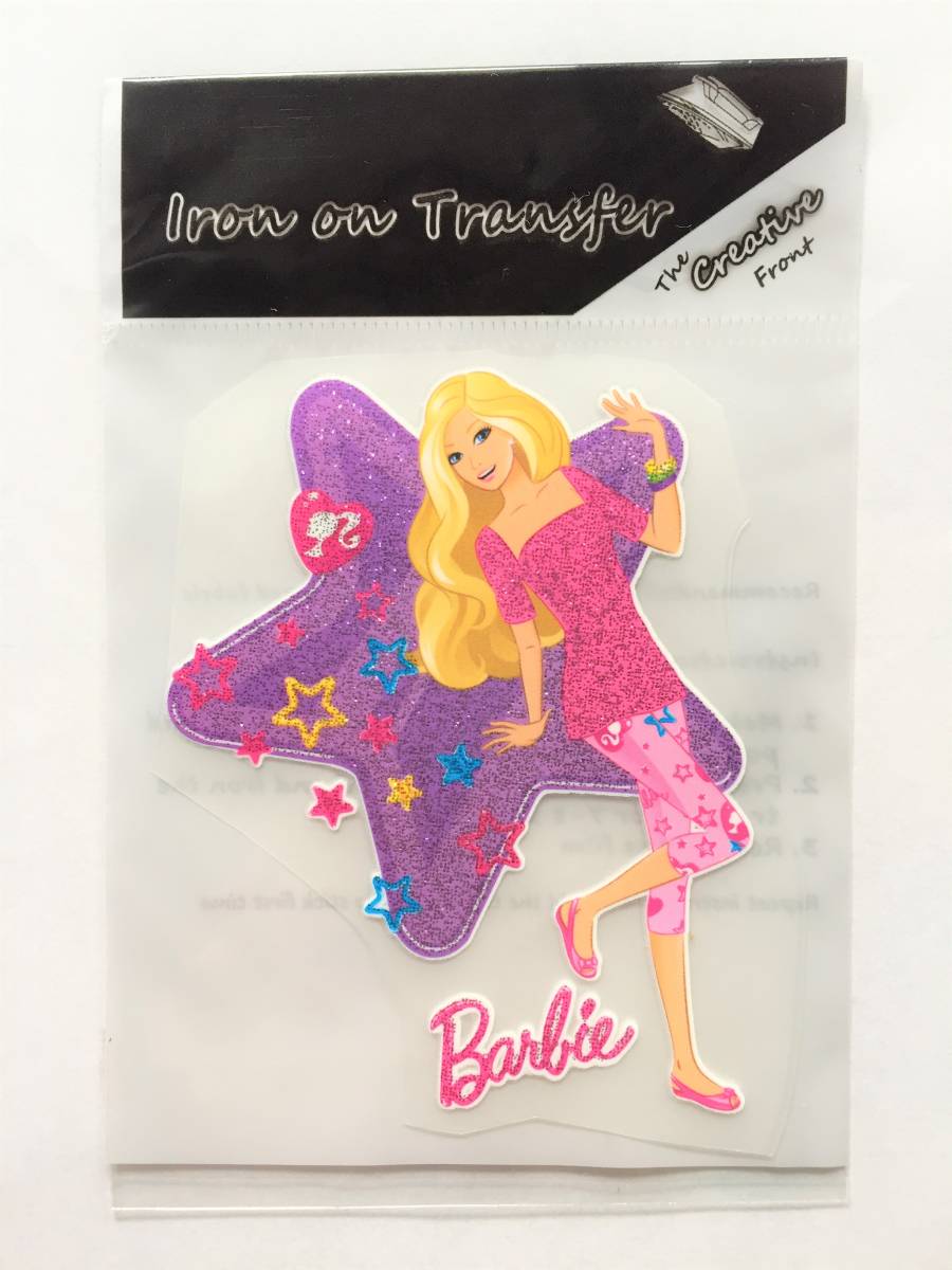 - 新品&即決 バービー かわいい アイロンシール/スモック Tシャツ/星 スター/入園 入学/紫 パープル/女の子