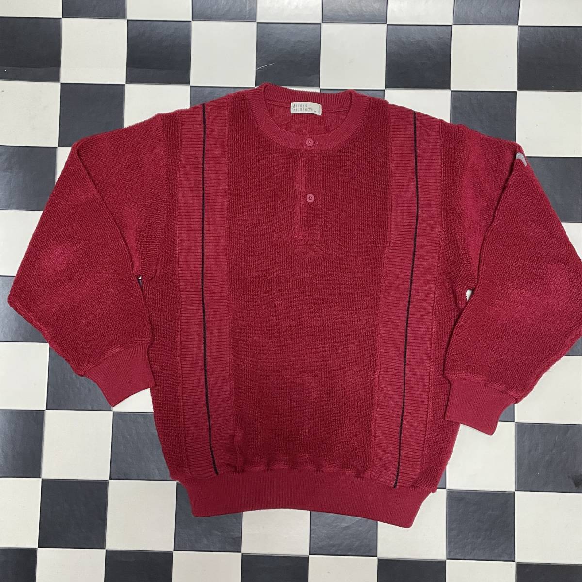 > アーノルドパーマー ヘンリーネックセーター サイズM Y5075 赤エンジ レトロ レターパックプラス