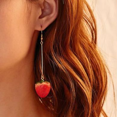 - ゆらゆら 一粒 苺 フック ロング ピアス ゴールド