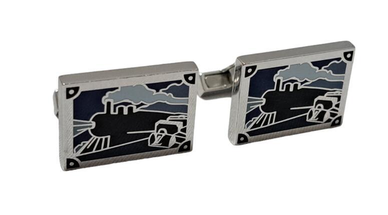 - ルイヴィトン カフス SV925 蒸気機関車 スクエア ブトン ドゥ マンシェット 汽車 ボストンバッグ カフスボタン 【中古】