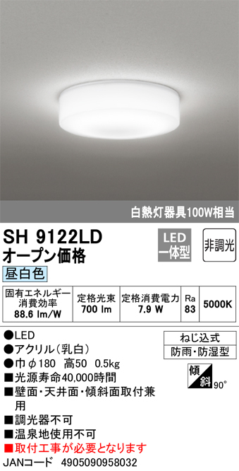 > オーデリック SH9122LD LED浴室灯 昼白色 JAN 4905090958032 jyu a