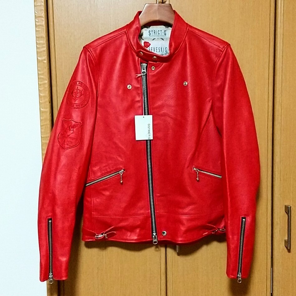 > 【未使用品】SEVESKIG × STRICT-G ライダースジャケット 機動戦士ガンダム シャア・アズナブル 赤 レッド 牛革 M セブシグ backlash STRUM