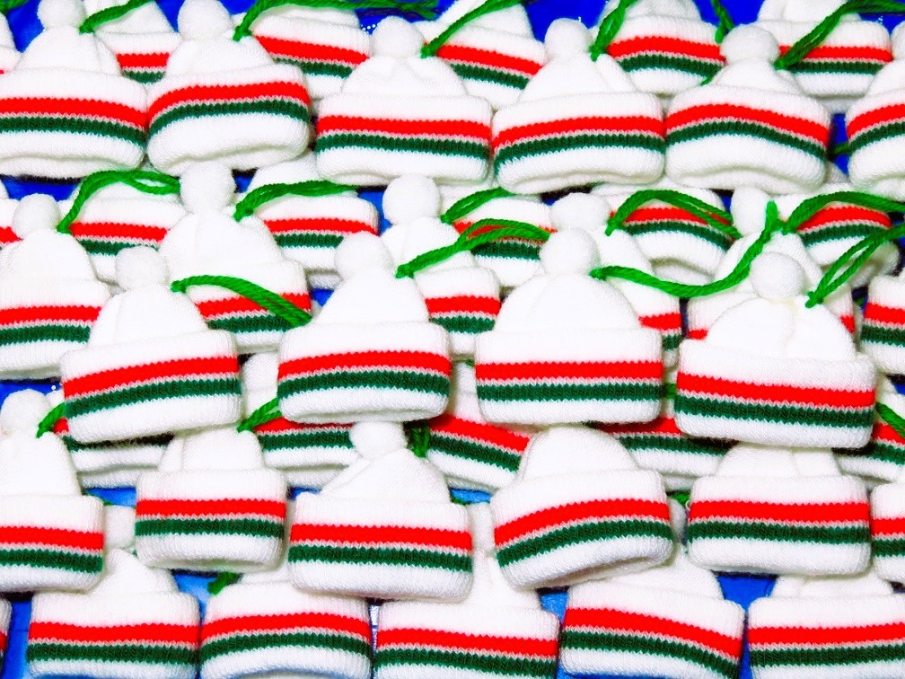 > 【☆ニットストライプボウシ白ボンテン☆50個☆】ギフトチャーム☆バレンタイン ホワイトデー ウェディング ラッピング ディスプレイ 販促