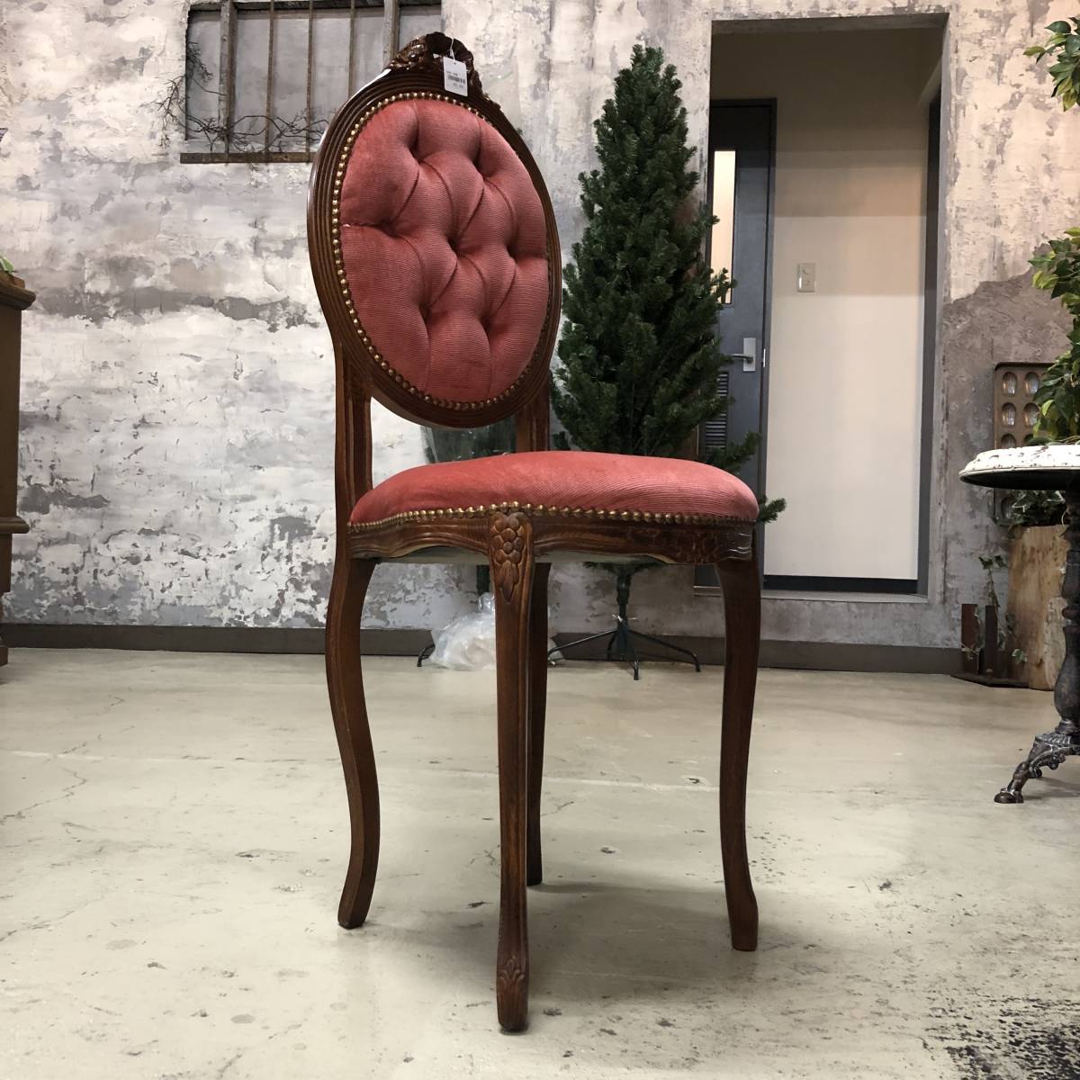 - 【ecorio/エコリオ】イタリア製 高級彫刻椅子 猫脚 ボタンダウン サロンチェア 鋲打ち ロココ調 細脚 ヴァーミリオン色 アンティーク