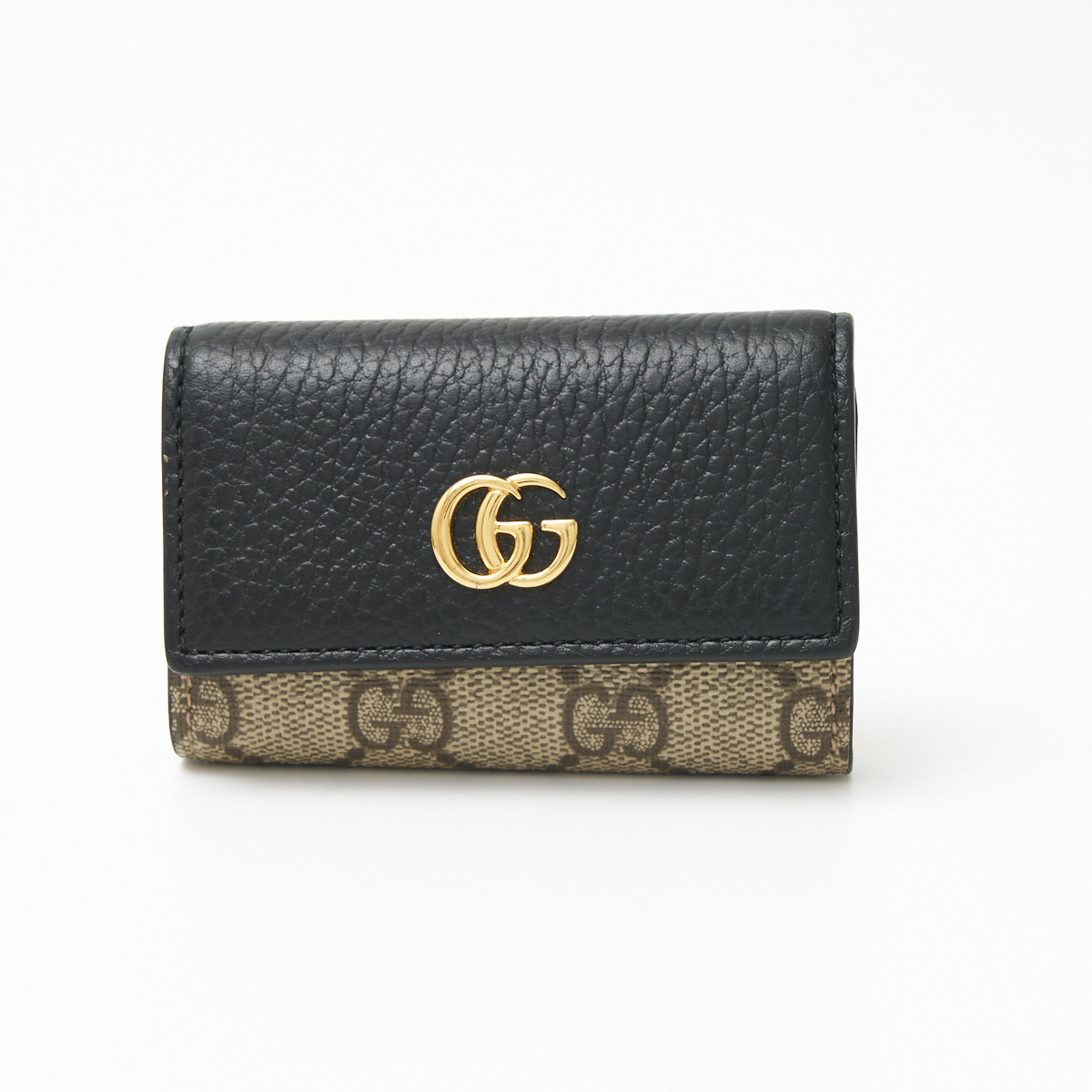 > GUCCI グッチ 〔GGマーモント〕 レザー キーケース 456118 鍵入れ GGスプリーム キャンバス×レザー ベージュ×ブラック×ゴールド 小物