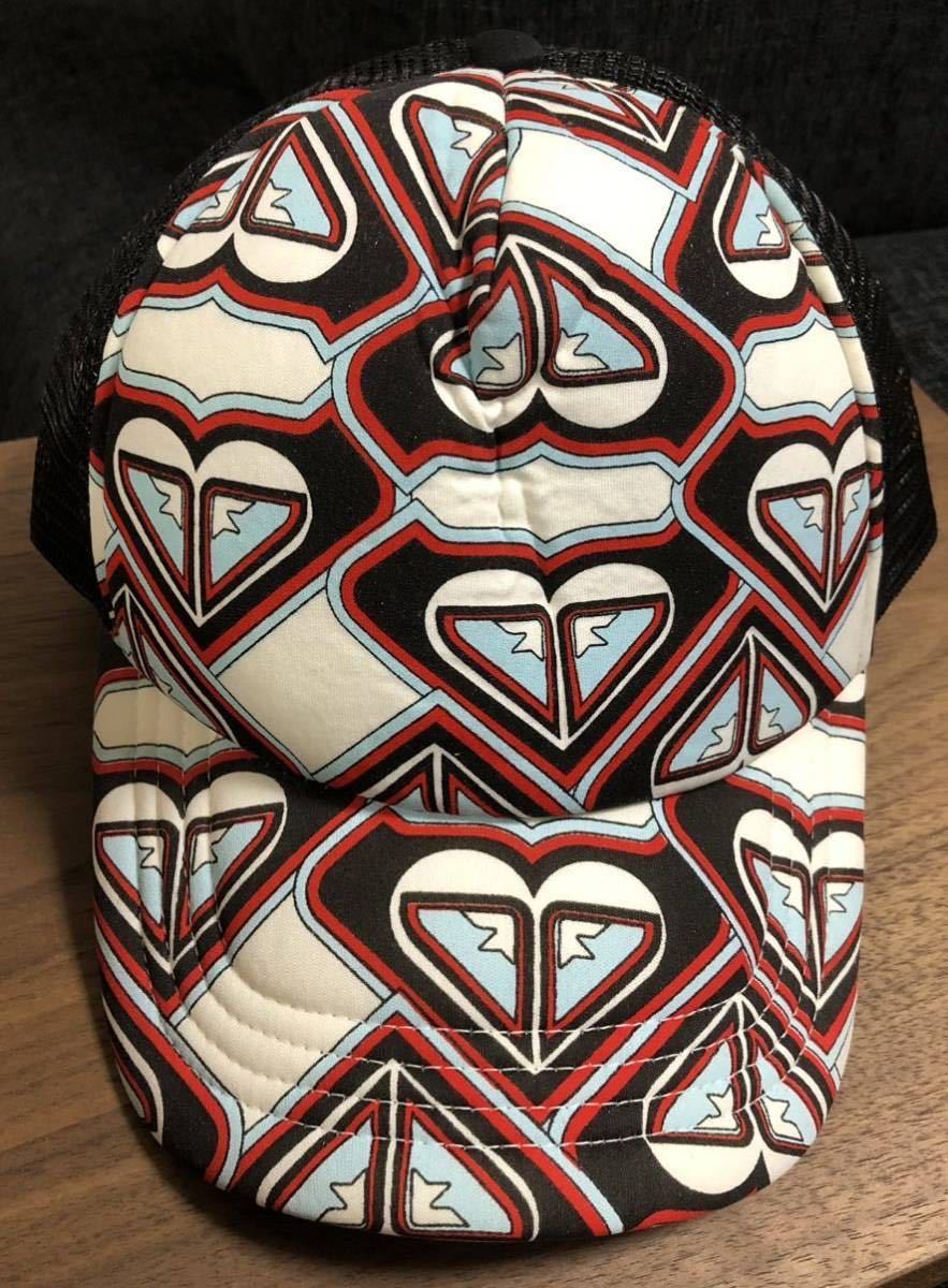 > レア ROXY ロゴマーク柄 派手カワ キャップ ロキシー コットン×メッシュ ブラック 黒 サーフ ヴィンテージ ユニセックス サイズ調整可能