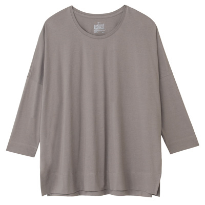 > ◆MUJI 無印良品 モダール コットン ドルマンスリーブ 七分袖 Tシャツ グレイッシュブラウン オーガニックコットン 洗濯済み 匿名発送