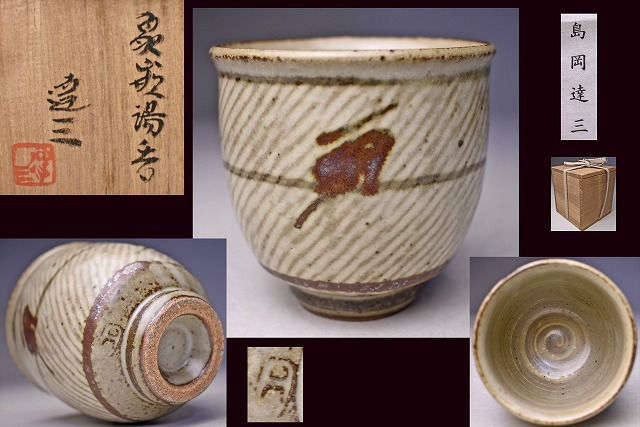 > 島岡達三 ★ 象嵌湯呑 ★ 共箱栞 ★ ななめの象嵌 ★ 益子焼 人間国宝 ★ 濱田庄司 師事 ★ 民芸 ★ tatsuzo shimaoka mashiko yaki