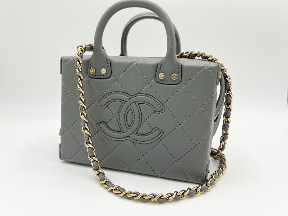 - 送料無料 CHANEL シャネル スモール バニティ ケース チェーンショルダーバッグ グレー ランダムプレート AS3344 美品