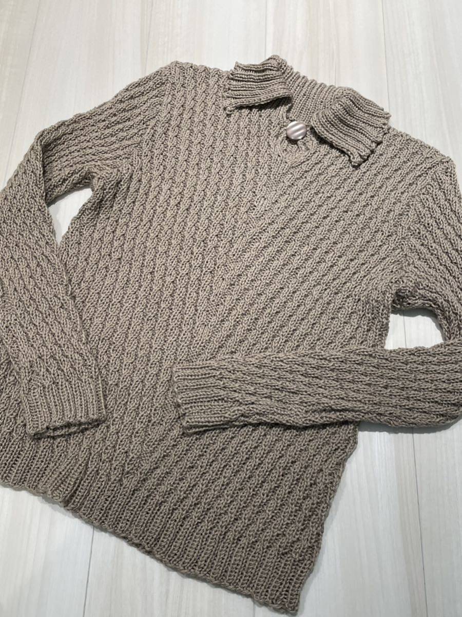 - 未使用 レディース ブラウン カーキ系 襟付き セーター 約9号 ハンドメイド 手編み ニット 中細 毛30、アクリル70%