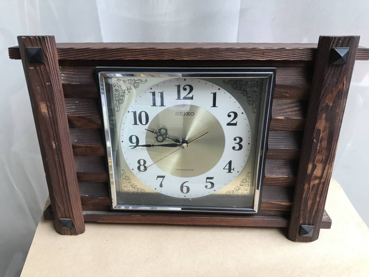 - ◎ヤYS3294★1970年代・セイコー・トランジスタクロック・振動子時計・RA7711・組み木・角型 中古品 現状品