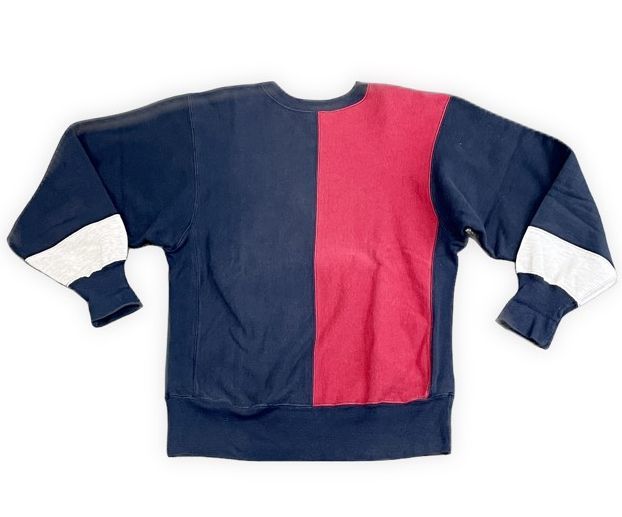 - 90’s 米国製 チャンピオン リバースウィーブ Champion REVERSE WEAVE クレイジー マルチ ネイビー バーガンディ グレー 目無 XL [kn-0256]