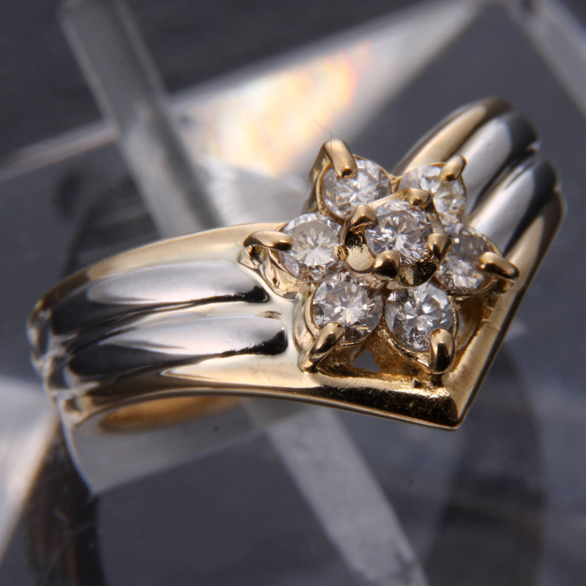 - ke9844◆磨き済 K18/Pt900リング V字 ダイヤモンド 6.5号