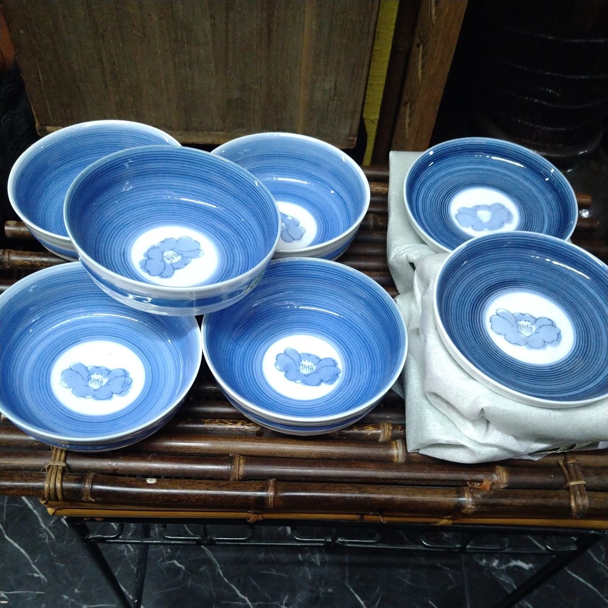 - 未使用 有田焼 椿柄 和食器 染付 小鉢5 小皿5