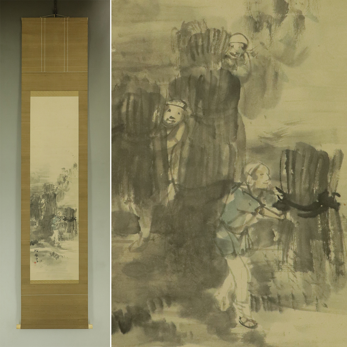 - 【模写】藤井松林【大原女】◆紙本◆掛軸 t03146