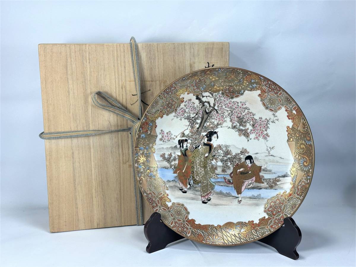 > E194●九谷焼 名工 鏑木製 細密 赤絵 金彩 美人図 大皿 飾皿 骨董 古玩 古美術品 古道具 在銘 重さ約:1.15kg 現状品