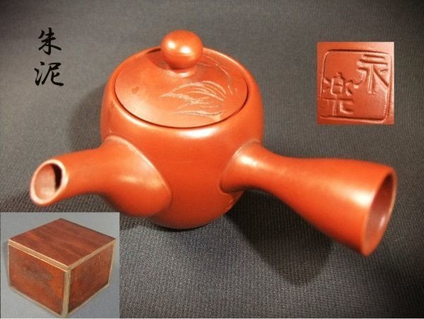 - 【睦】常滑焼 朱泥 急須 永楽 煎茶道具 紫砂 朱泥 急須 茶壺 美品 木箱■