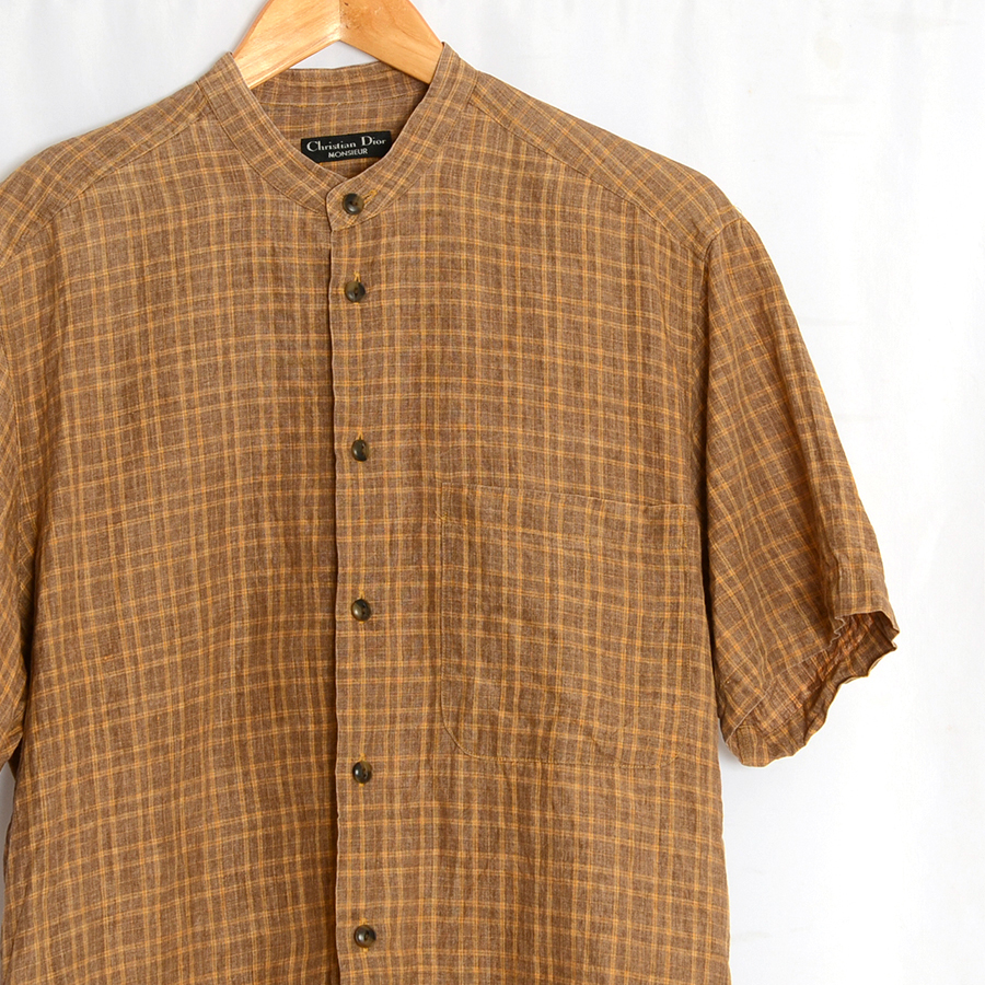 - AA226 クリスチャンディオール DIOR 半袖シャツ M 肩幅48 丸首 格子柄 メール便可 xq