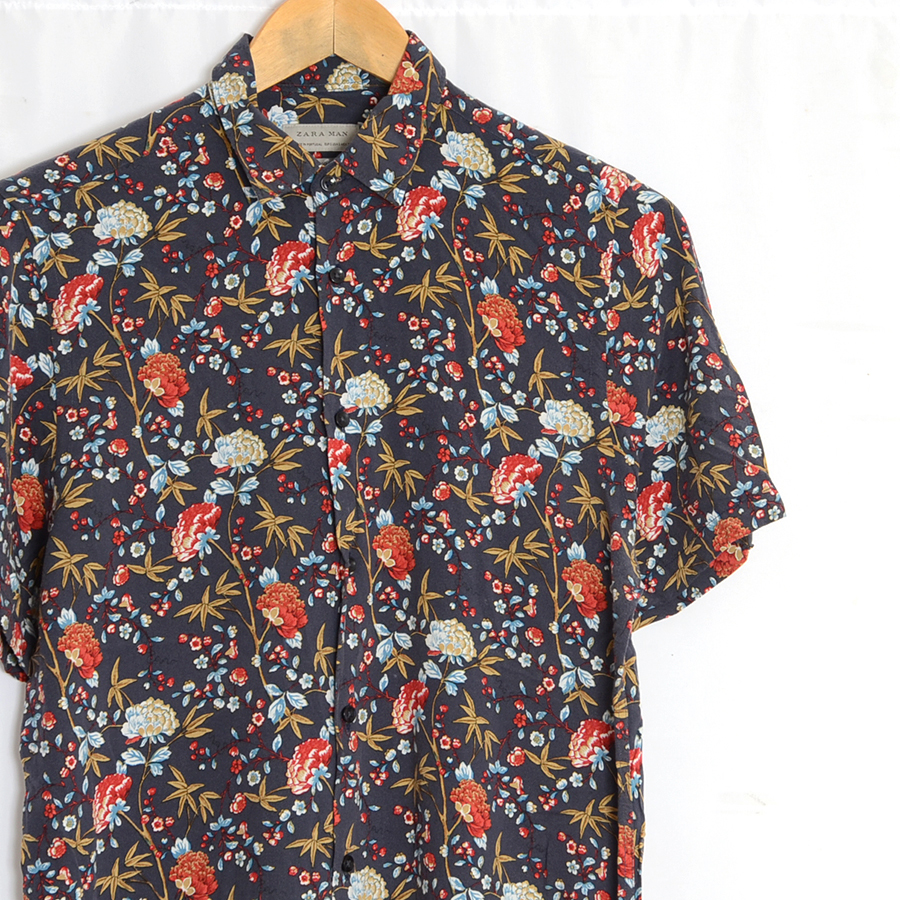 - AA171 ザラ ZARA MAN アロハ 半袖シャツ S 肩幅39 花柄 ボタニカル メール便可 xq