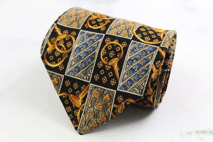 - セリーヌ シルク チェック柄 花柄 小紋柄 スペイン製 ブランド ネクタイ メンズ ネイビー CELINE