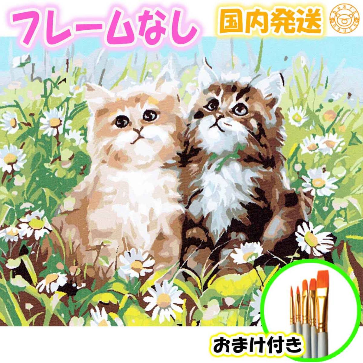 - ☆おまけ付き☆【フレームなし】 数字塗り絵 セット 大人 ぬりえ 絵の具付き 猫 cat ねこ 花畑 はな インテリア 絵画 油絵風 r049