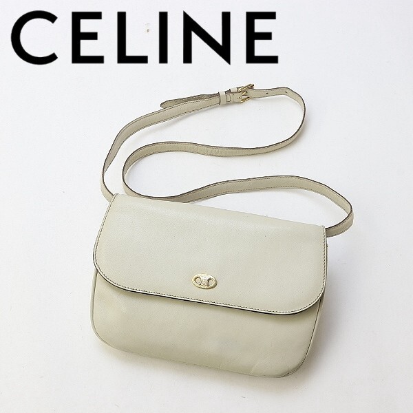 > ヴィンテージ◆CELINE セリーヌ レザー マカダム ロゴ金具 斜め掛け ショルダー バッグ アイボリー