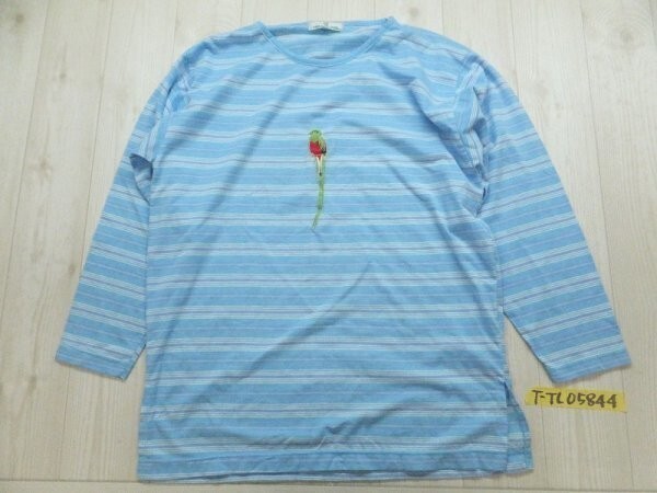 - MK produced by TOKYO MK JAPAN メンズ ボーダー 七分袖 鳥刺繍 カットソー F 水色白