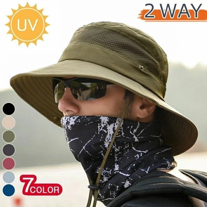 - サファリハット UPF50+ UVカット率99% 2WAY 日焼け防止 ハット ひも付き 大きいサイズ 釣り 散歩 登山 男女兼用 多色選択/1点 ZCL1266