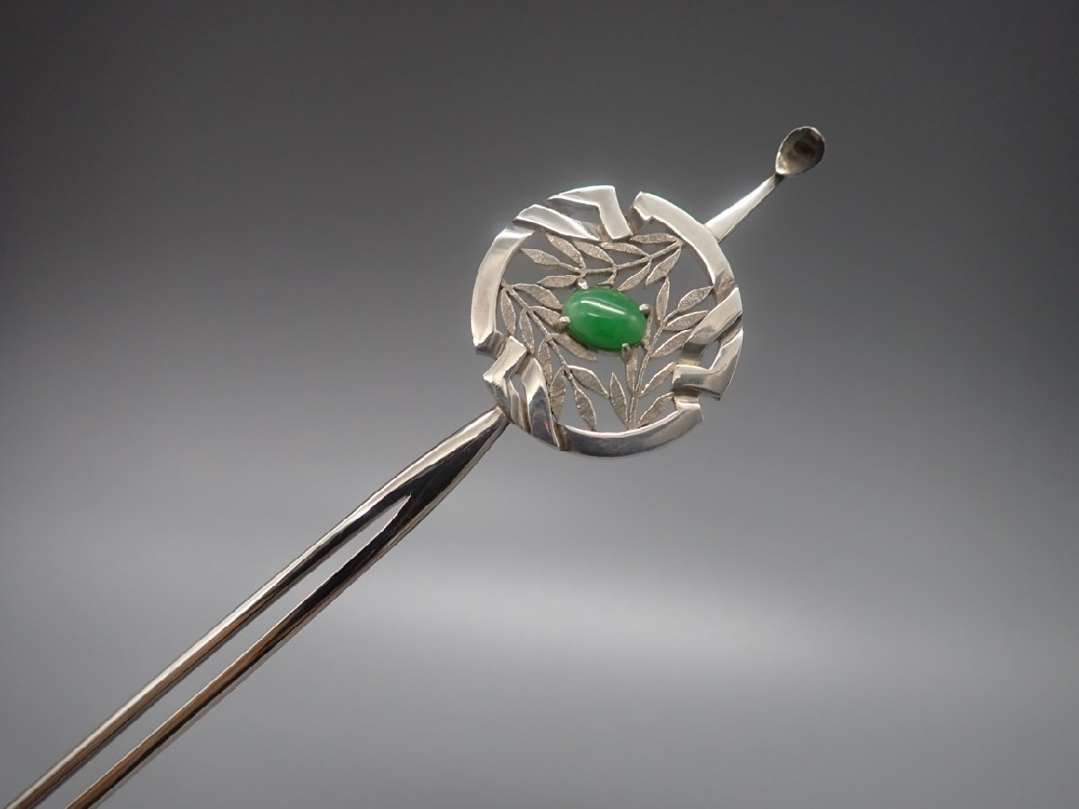- 天然ひすい 無染色(含浸なし)金工作家HIROMITSU作 銀製かんざし