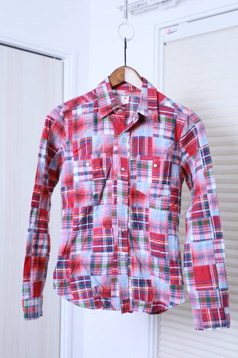 日本製Jipijapa ヒピハパ パッチワークチェック柄長袖シャツ