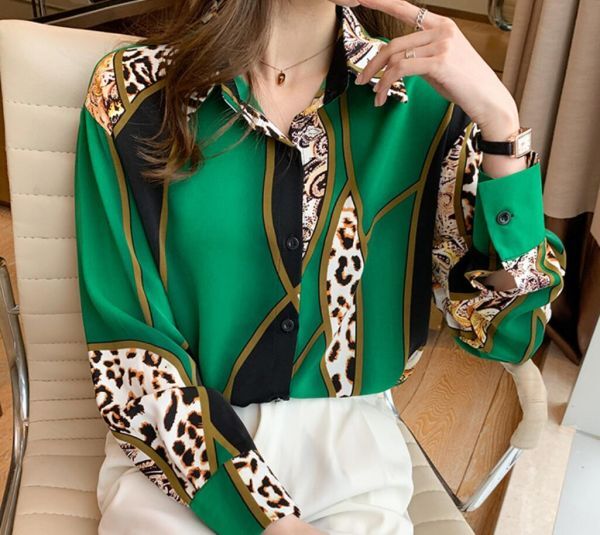 - 春新品 /カジュアル ブラウス シャツ レディース シフォン 長袖 シャツ キレイめ プリント柄 大人 エレガント 通勤 お出かけ トップス