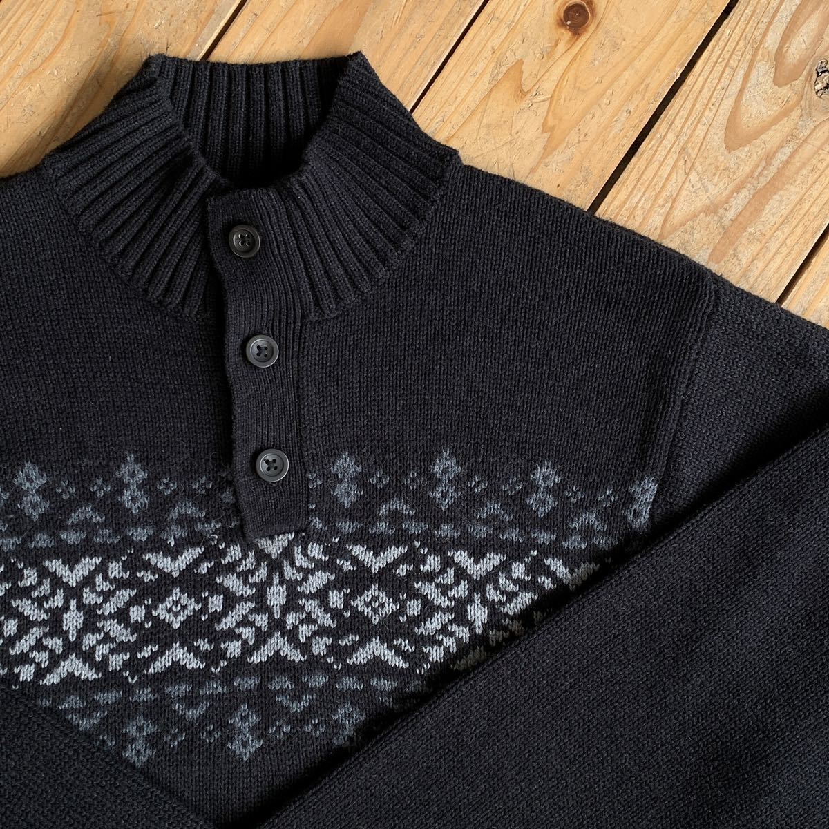 - USA古着 CHAPS チャプス ハーフボタンセーターメンズ Mサイズ アメカジ ニット ブラック コットン プルオーバー おしゃれ ラルフ S0805