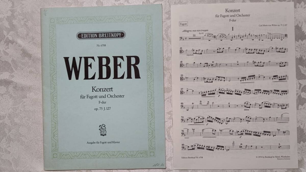 - パート譜付き楽譜 洋書 Breitkopf版 ウェーバー ファゴット協奏曲 ヘ長調 op. 75 J 127 Carl Maria von Weber Fagott Concerto F-dur