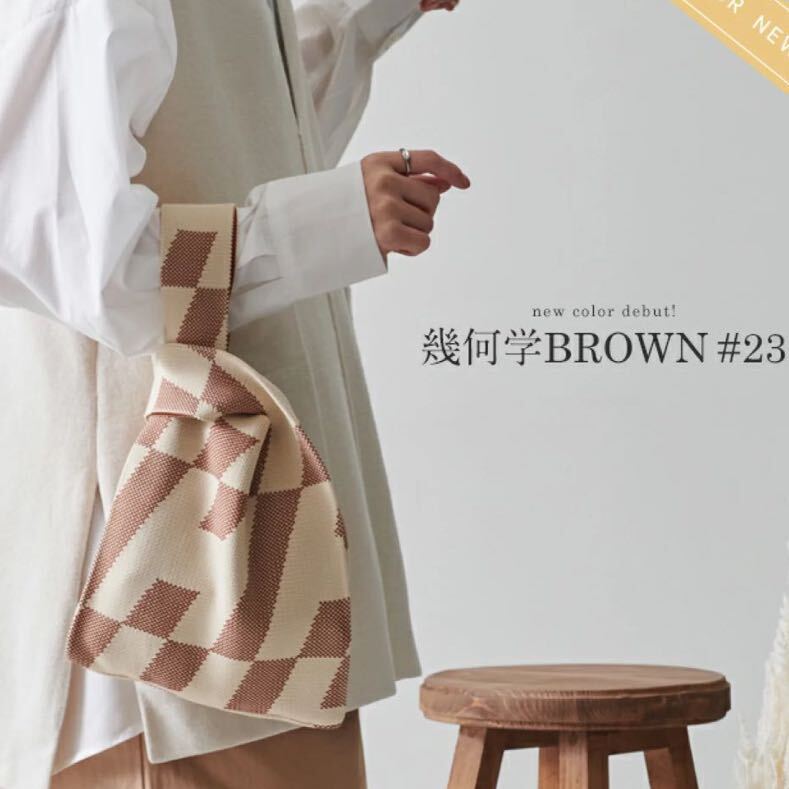 - スタイルオンバッグ クロシェ編み ニット トート バッグ 幾何学 ブラウン A