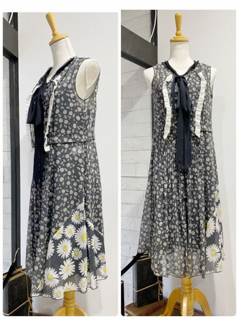 > 美品 定価8万 MARC JACOBS マークジェイコブス インナー付き 高級コットンシルクリボン ワンピース レディース 0サイズ