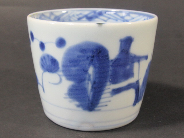 - ◆蕎麦猪口:1:◆『東屋山水帆掛け船之図』◆べた底◆染付:青華◆幕末◆