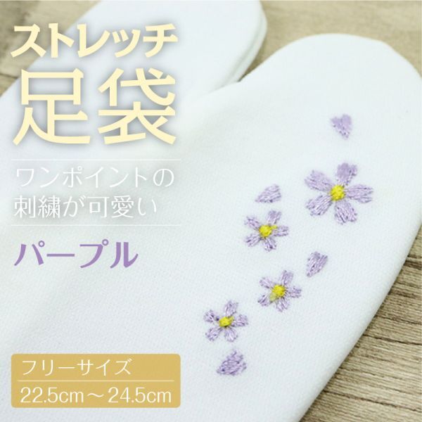 - 【ストレッチ足袋 桜柄】【パープル】 刺繍足袋 足袋カバー 成人式 振袖 ストレッチ足袋 白