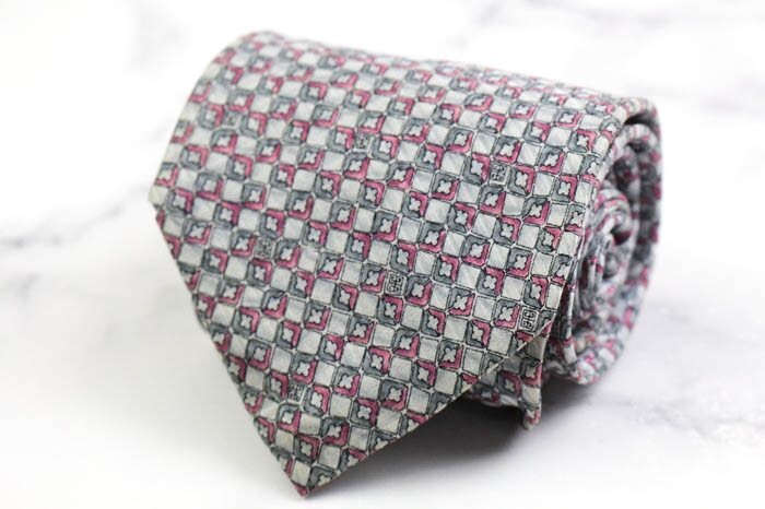 - ジバンシィ シルク ロゴ チェック柄 格子柄 イタリア製 ブランド ネクタイ メンズ グレー GIVENCHY ジバンシー