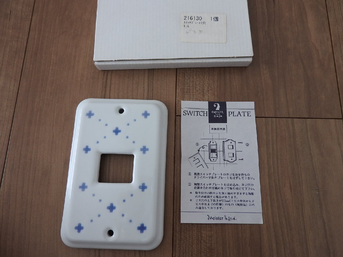 > ★☆【送料無料】未使用 スイッチプレート スイッチカバー 陶器製 アンティーク 1穴 キリム☆★
