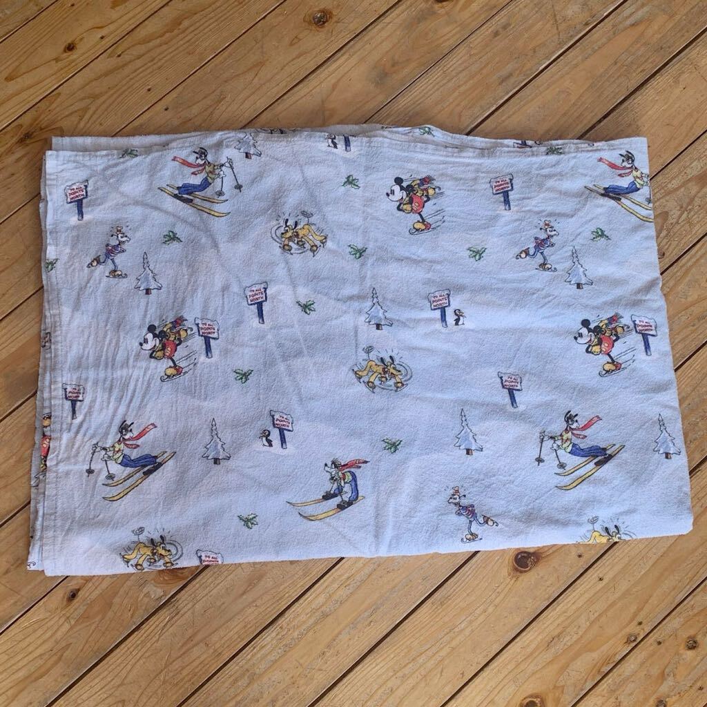 - USAヴィンテージ ベッドシーツ ディズニー Disney リメイク生地 素材 スキー ミッキー プルート フラットシーツ アメリカ仕入 総柄 B1862