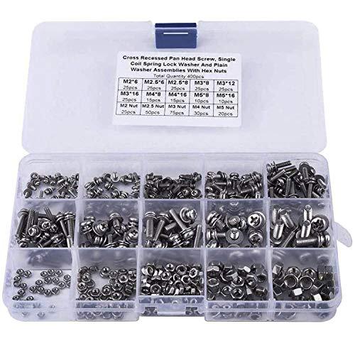 - GOOMAND ボルトセット400本入 M2 M2.5 M3 M4 M5十字ねじ ロックワッシャ 平ワッシャー 304ス