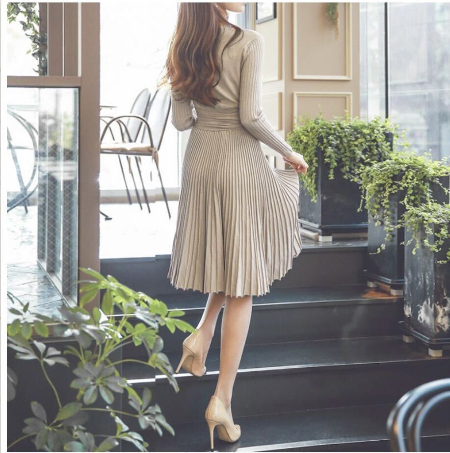 - 春ワンピース プリーツスカート ラップデザイン