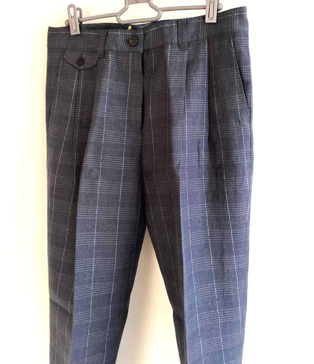 - P58 新品未使用 ブルックスブラザーズ 定価61,600 Lサイズ相当 ネイビー 麻入り 裾ダブル チェック BROOKS BROTHERS