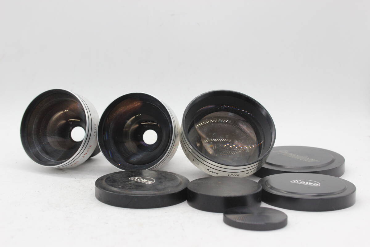 > 【返品保証】 【レンズ3点まとめ】コーワ KOWA Prominar Aux Telephoto 85mm F4 Wide-Angle 前後キャップ付き レンズ s8409