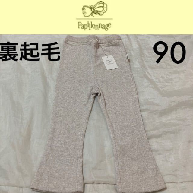 - 新品タグ付き☆Papilonnage 裏起毛ブーツカットパンツ 90 ベージュ オートミール スウェットパンツ パピヨナージュ fas